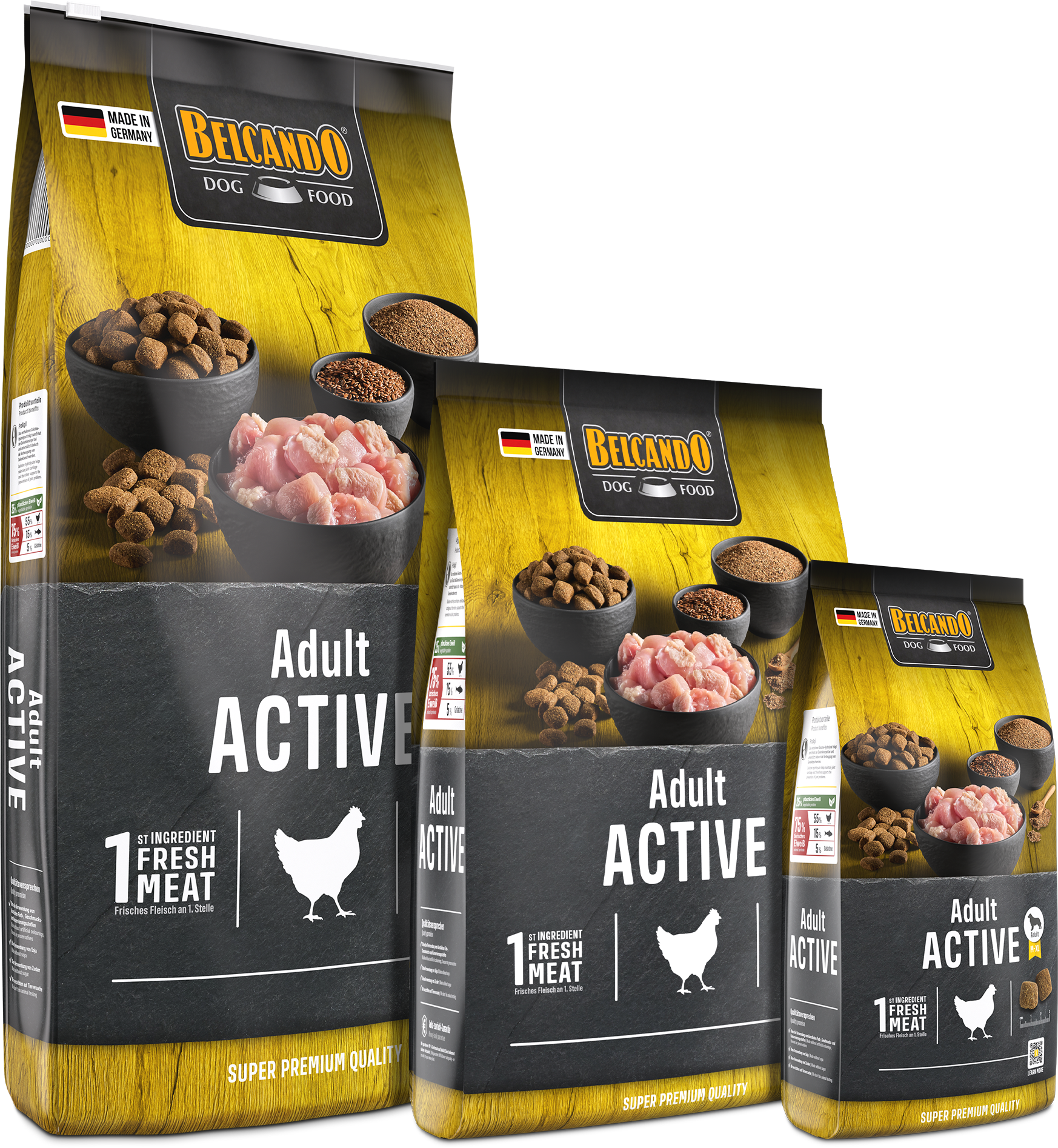 Nur die besten Rohstoffe: Gut verdauliches Geflügel, die wertvollen Omega-3-Fettsäuren der Leinsaat und urgesundes Johannisbrotschrot, das wichtige Gerb- und Vitalstoffe liefert, machen BELCANDO® Adult Active zu einem ganzheitlichen Futter für den Hund, der die Bewegung liebt.