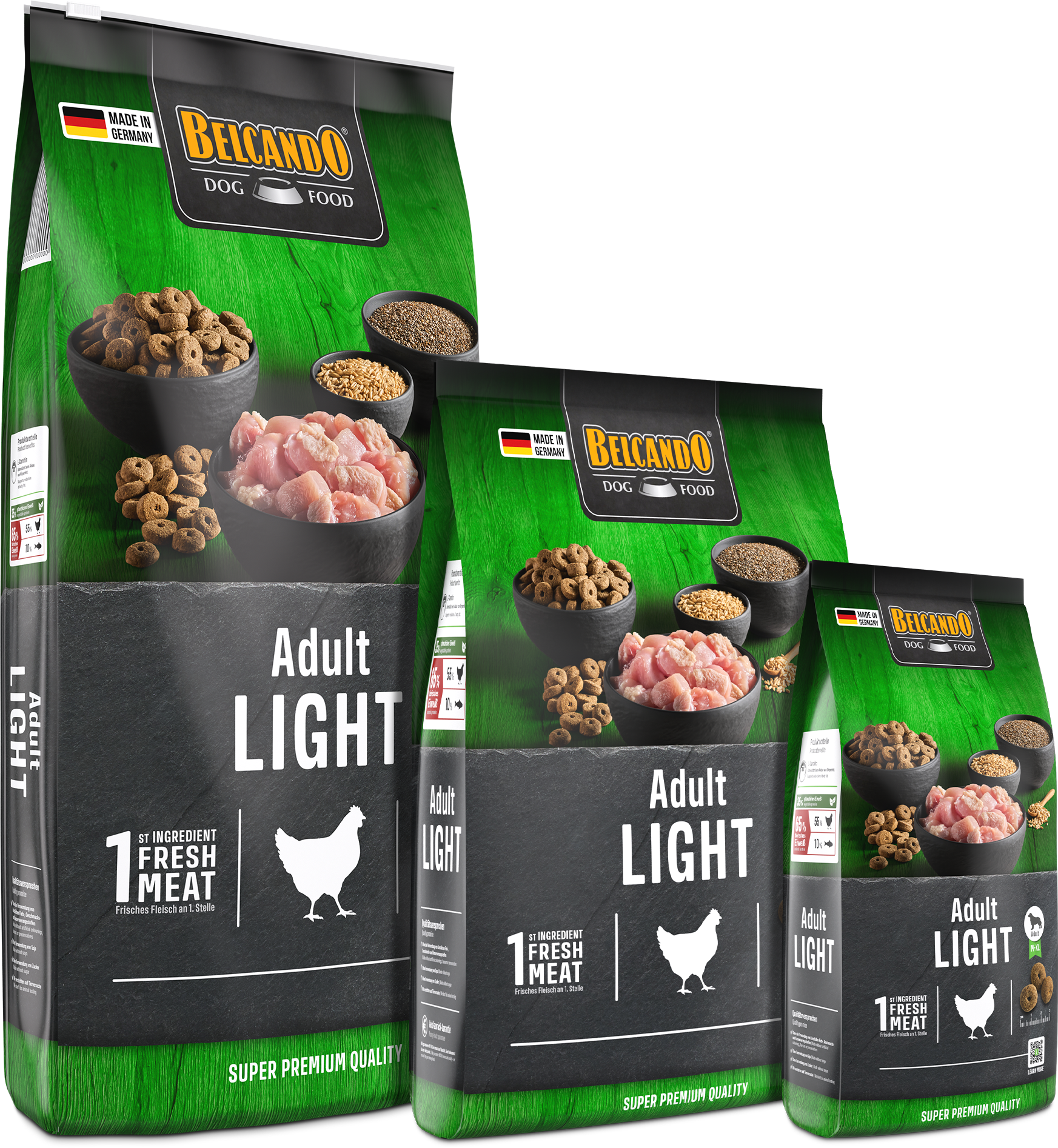Sorgfältig ausgesuchte Rohstoffe, leichtes, gut verträgliches Geflügel, sättigender Hafer und verdauungsfördernde Chiasaat machen BELCANDO® Adult Light zum gesunden Futter für Hunde, die wenig aktiv oder übergewichtig sind. Der Gehalt an Protein und Fett ist deutlich begrenzt und wurde den Bedürfnissen dieser Hunde angepasst. Ein hoher Anteil an Rohfasern sorgt bei Beachtung der geeigneten Futtermenge für ein konstantes oder sinkendes Körpergewicht bei angemessener Sättigung. Die im Fleisch auch natürlich vorkommende Eiweißverbindung L-Carnitin unterstützt die Fettverbrennung zusätzlich.