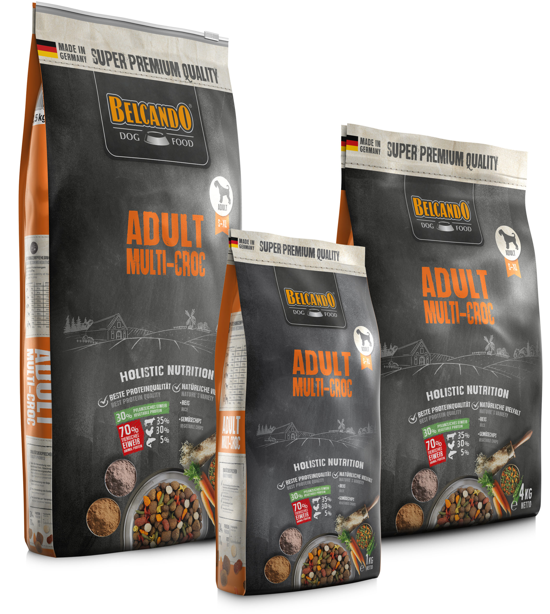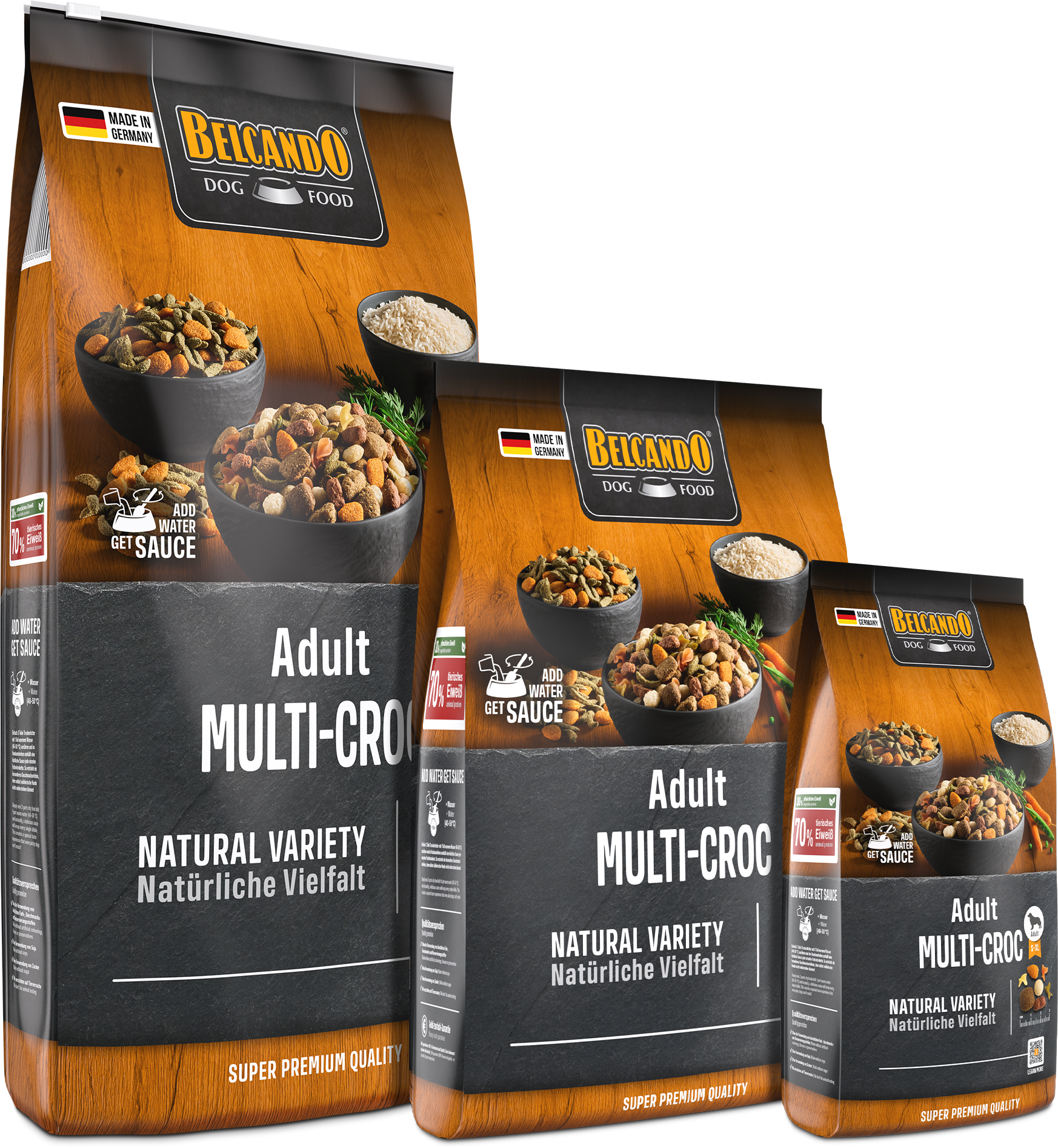 Als Besonderheit zur Förderung des Geschmacks wurde BELCANDO® Adult Multi-Croc mit einer speziellen Sauce ausgestattet. Unter sorgfältigem Anrühren von 3 Teilen BELCANDO® Adult Multi-Croc mit 1 Teil warmen Wasser (40-50 °C) bildet sich ein besonders schmackhafter Soßenüberzug über die Futterpartikel. Dieser ist für wählerische Hunde eine besondere Delikatesse. Aber auch bei trockener Fütterung zeichnet sich BELCANDO® Adult Multi-Croc durch höchsten Geschmack aus.