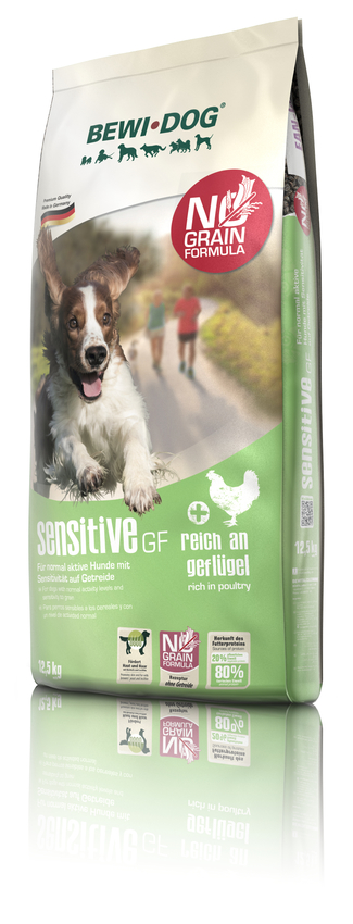 Ihr Hund weist eine Unverträglichkeit gegen Getreide auf? Dann ist unsere neue Sorte BEWI DOG® sensitive GF die ideale Alternative. Dank der Rezeptur ohne Getreide ist sie optimal an diese besonderen Ernährungsbedürfnisse angepasst.