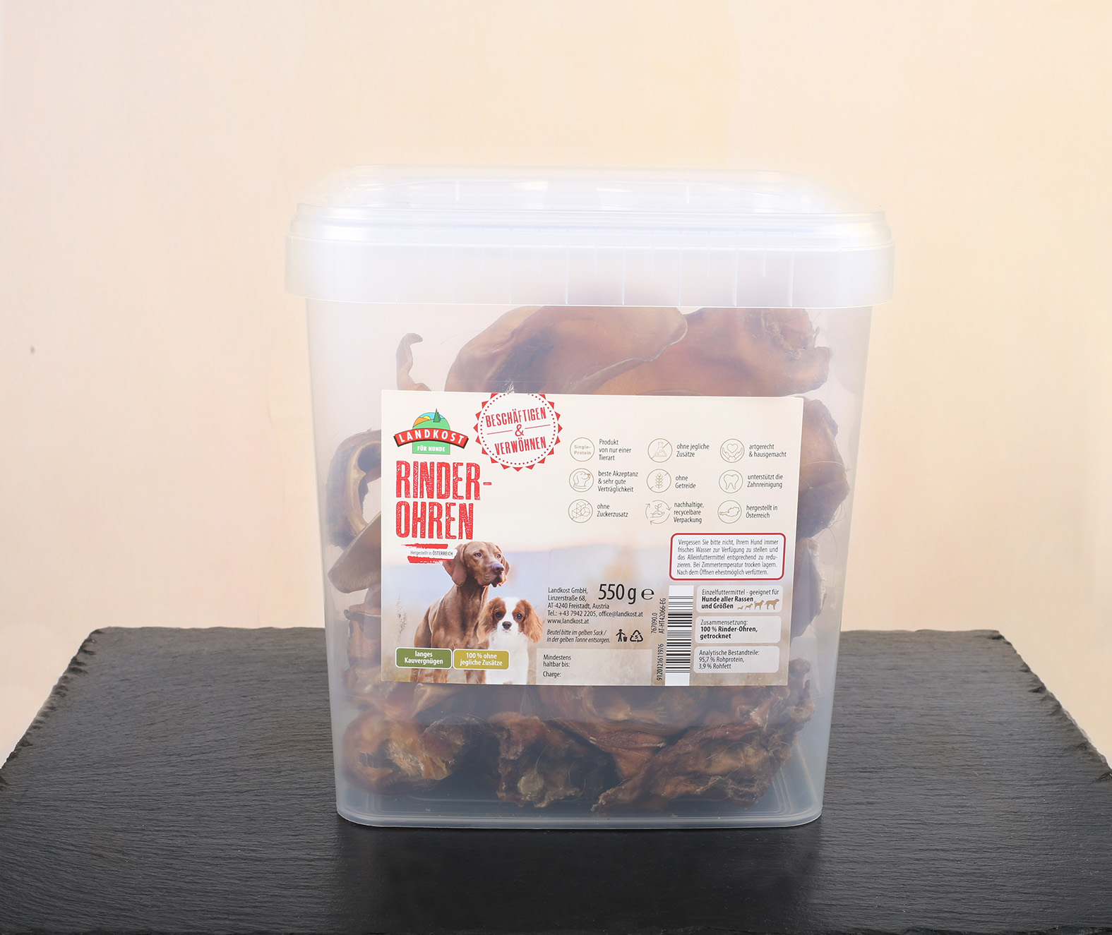 Ausgiebiger, fettarmer, proteinreicher Kauspaß – Landkost Rinder-Ohren unterstützen auch